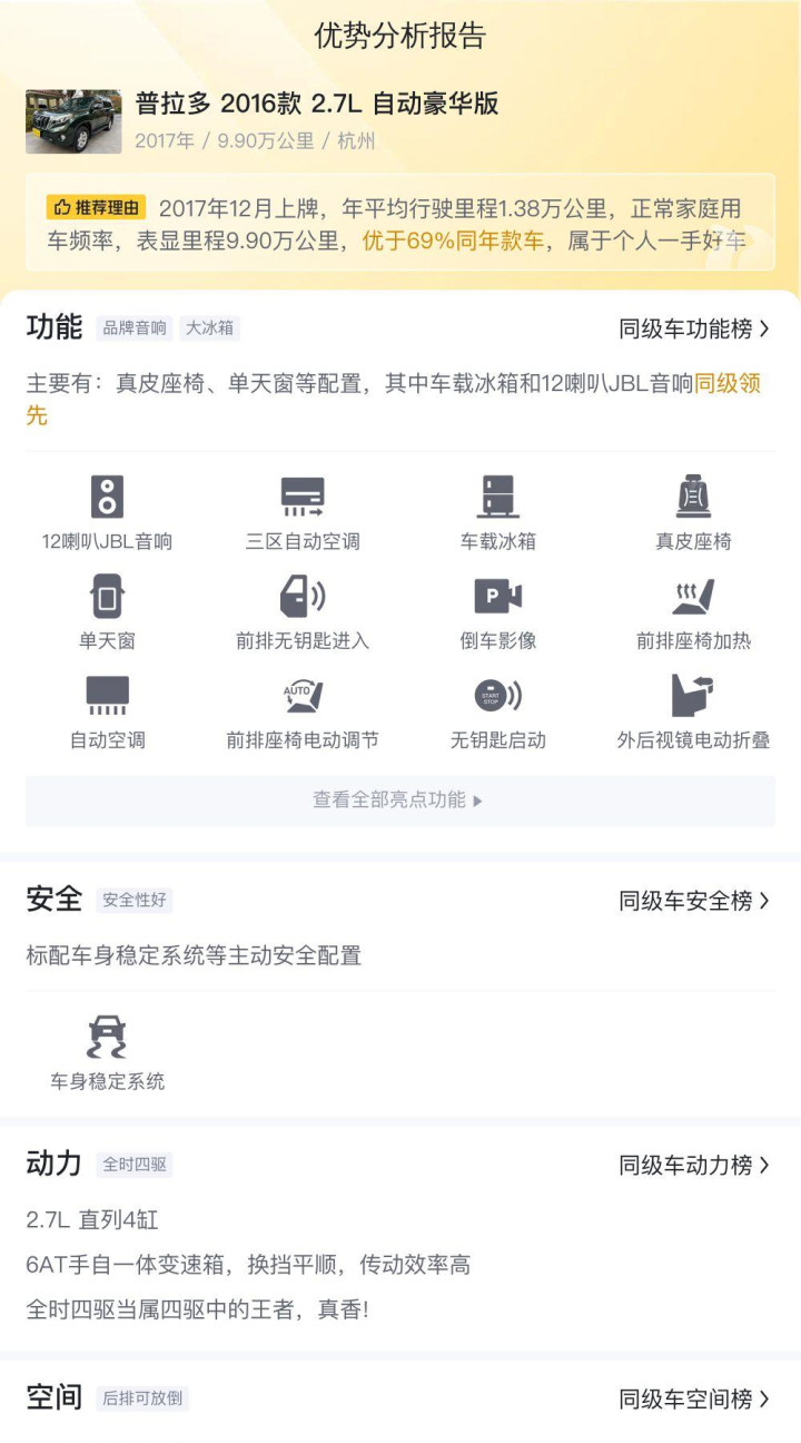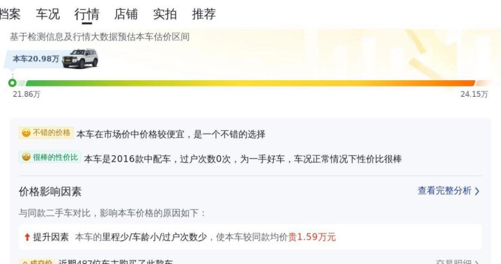 我们再来看看市场行情。目前,同款普拉多的二手车价格在18.83万到23.87万之间。20.98万的报价处于市场中间价位,相对来说比较合理。考虑到这辆车的车况和配置,这个价格还是比较有吸引力的。